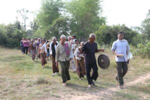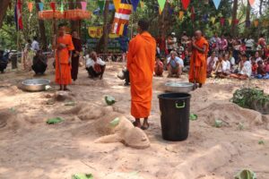 បន្ទាប់ពីកិច្ចពិធីតាមសាសនា និងបញ្ជូលរូបស្នងបានរាំលេងសប្បាយហើយ នៅខាងមុខប្រាសាទលាក់នាង ទៀតសោត អ្នកភូមិបានសូនដីខ្សាច់រាងបួនជ្រុងជារូបនាគព័ន្ធ តំណាងស្រះទឹក ក្នុងស្រះមានសត្វដូចជា ក្តាម ត្រី កង្កែប អណ្តើក ក្រពើ កំពឹស ខ្យង អន្ទង់ ដែលត្រូវមានកិច្ចពិធីនិមន្តព្រះសង្ឃគង់ឈរជុំវិញស្រះ សូត្រធម៌មហាមេឃ ដើម្បីសុំទឹកភ្លៀង។ ពេលសូត្រចប់អ្នកភូមិស្រង់ទឹកដល់ព្រះសង្ឃ និងចាស់ទុំ រួមទាំងលេជះទឹកឧបកិច្ចថា មានភ្លៀងធ្លាក់មកគ្រប់គ្រាន់ ទិន្នផលស្រូវដំណាំទទួលបានគាប់ប្រសើរដូចការប៉ងប្រាថ្នាពិតប្រាកដមែន៕KD